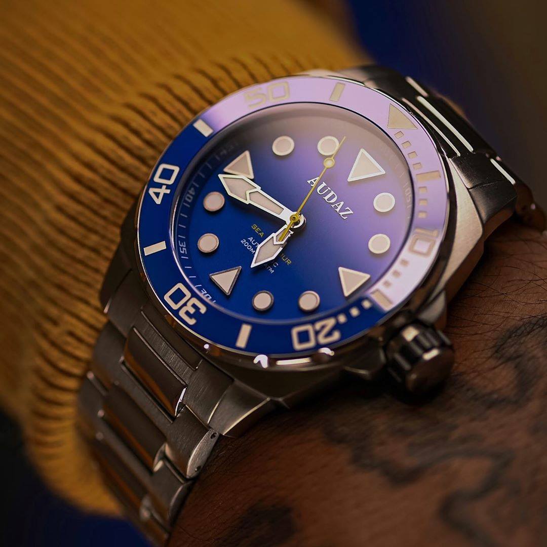 Legibility in low-light conditions is essential for divers, and the Sea Armour dive watch delivers exceptional visibility. Its clean, immaculate dial features large hands and applied indexes filled with blue glowing Swiss Super Luminova, ensuring readability in any environment.