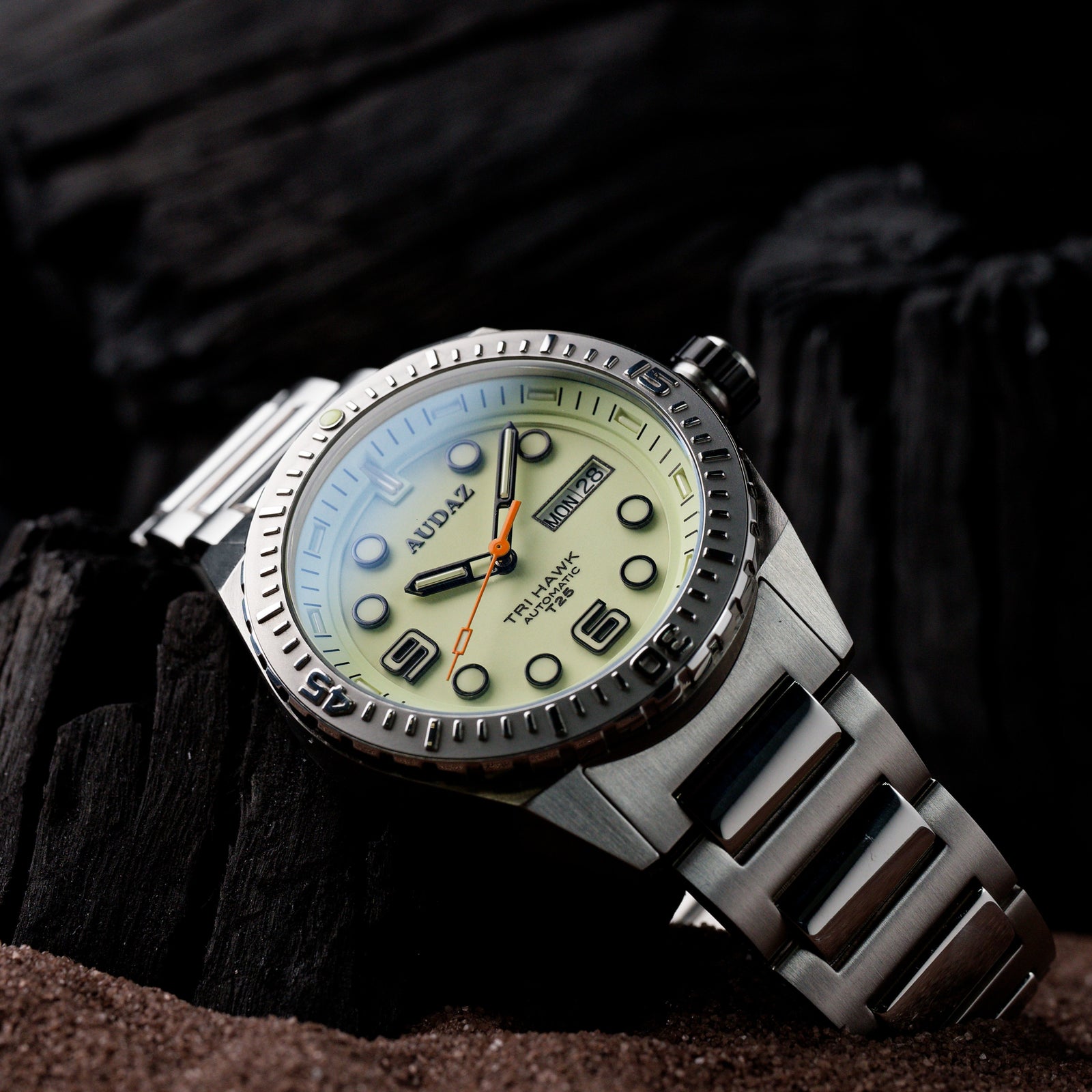 Seize the moment with the Tri-Hawk T25 series, designed for exploration and adventure below the deck. Featuring tritium tubes expertly paired with luminous dials, this timepiece offers stunning finishing, rugged capabilities, and the functionality of a true tool watch. The Tri-Hawk embodies our bold DNA, transforming into a sporty diver's watch that’s perfect for your underwater escapades!