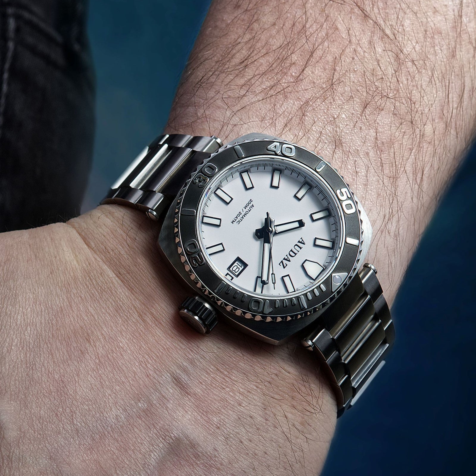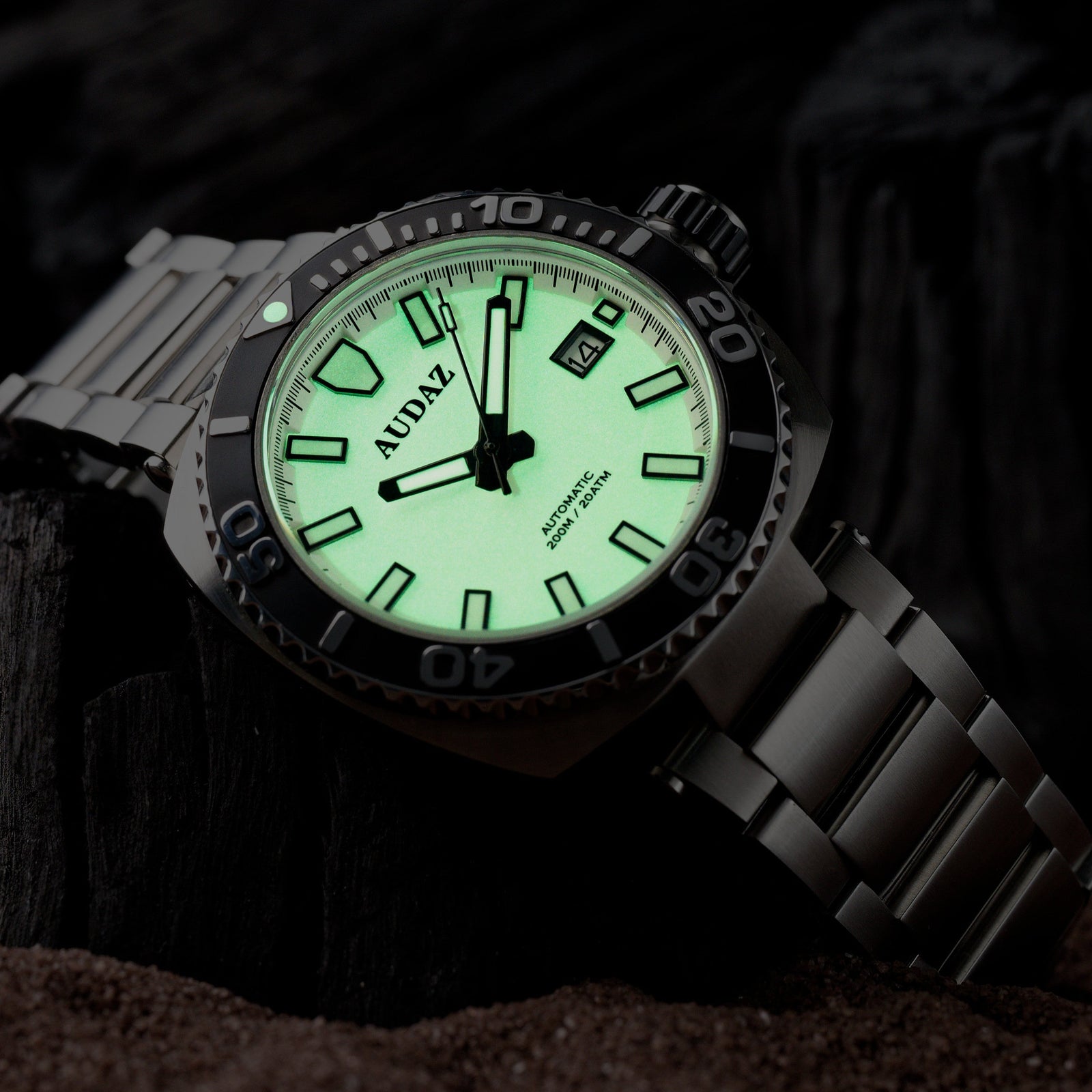 One of a kind distinctive cushion case offers a sporty flair on the wrists, featuring full lume dial, sapphire crystal. The timepiece is meticulous designed for optimum comfort and performance.
