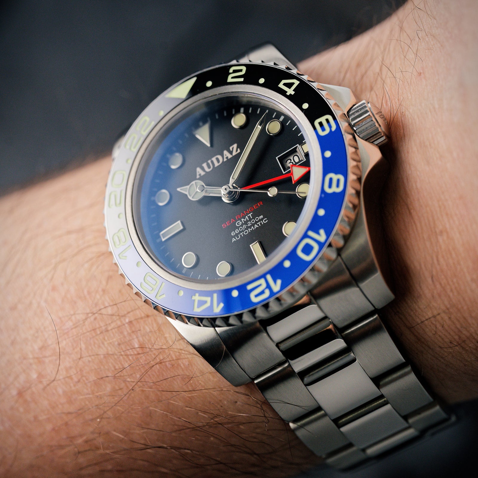 Engineered for water resistance up to 200m, the Sea Ranger GMT is crafted for adventures from expansive blue skies to the ocean depths. Its robust design and remarkable durability showcase unmatched capability and resilience.
